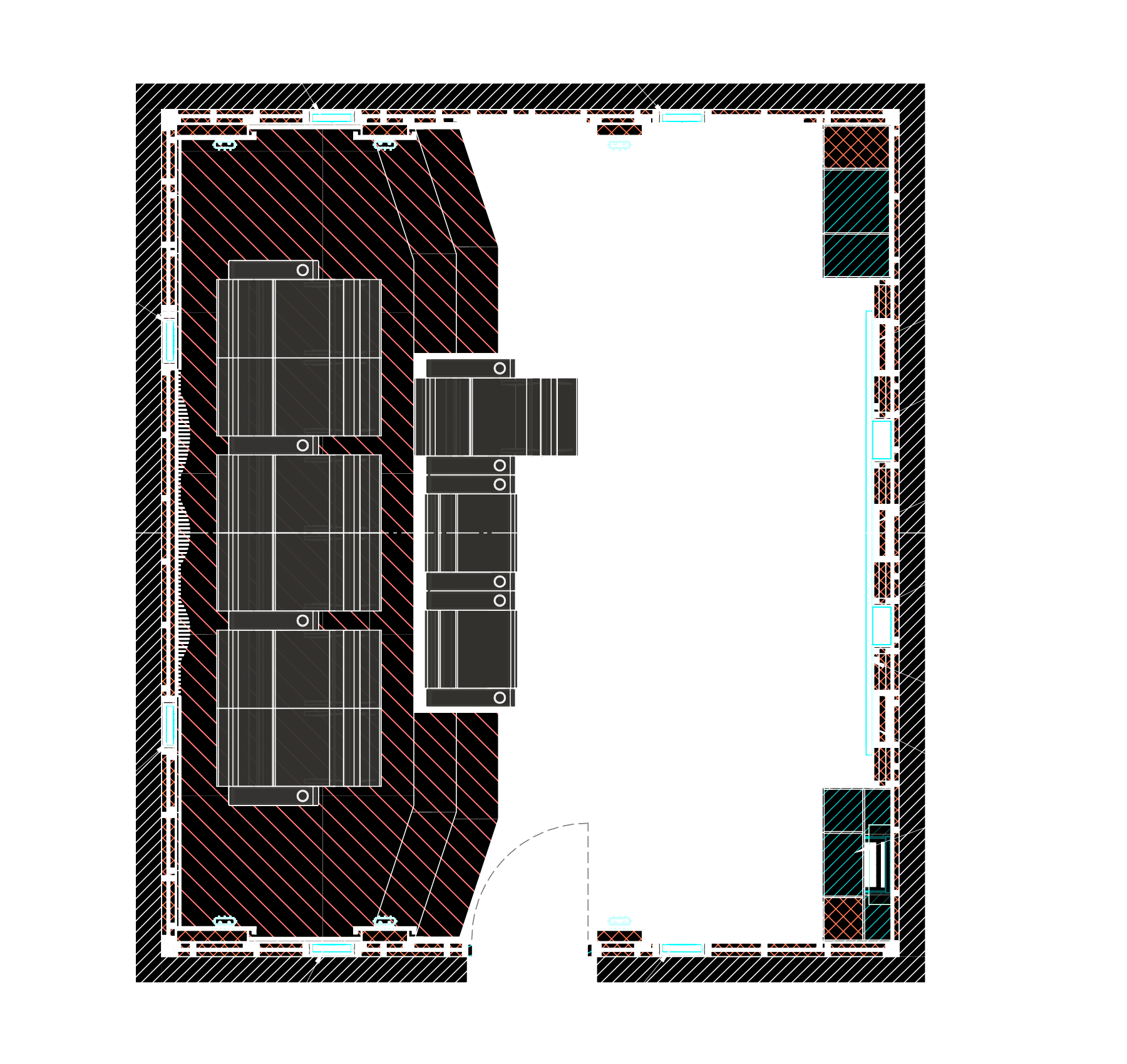 В процессе проектирования мы приняли решение переместить один из радиаторов у подиума и сместить вывод кондиционера для рэковой стойки, заложенный подрядчиком по ВиК.